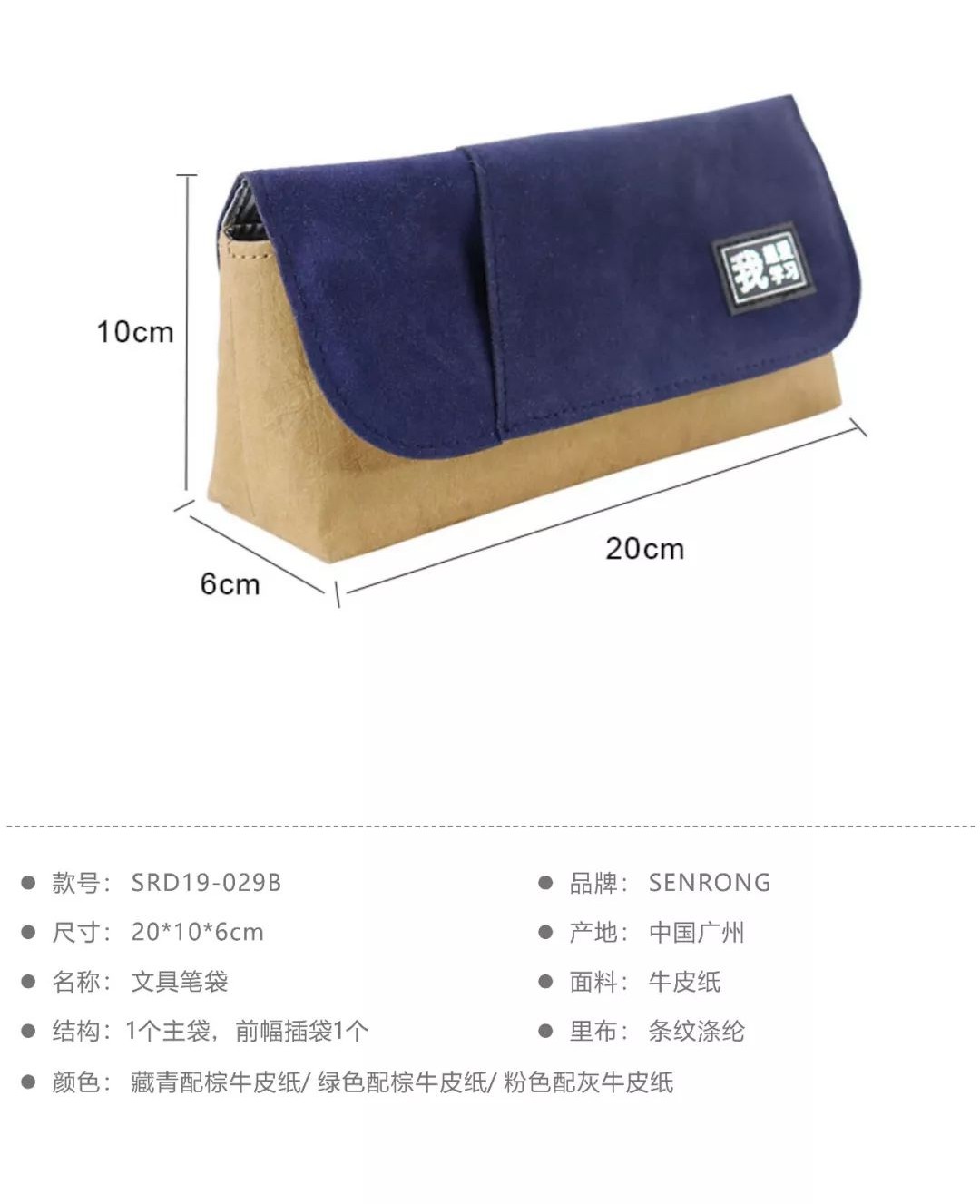 這款紙質(zhì)的筆袋采用水洗牛皮紙